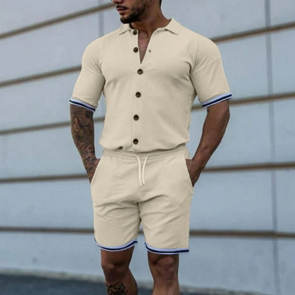 Urru Men S Polo Shirt And Shorts Set Summer Outfits Fashion Casual Short Sleeve Polo Suit For Men 2 Piece Shorts Tracksuit Beige S At Amazon Men S Clothing Store